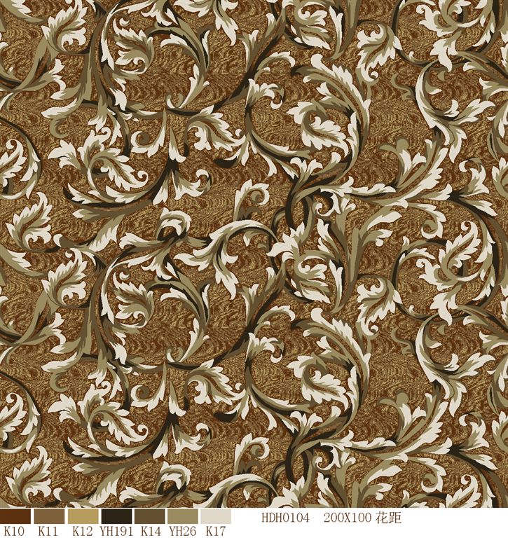 Nylon printed carpets has the advantages in color brightness , good resilience, long usage life, good resilience, easy cleaning and so on. It is favored by high-end hotels.